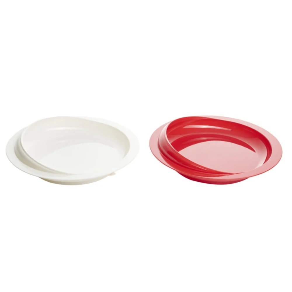 Plaats het bord op een schoon, glad oppervlak en druk het stevig aan zodat de zuignap vacuüm zuigt. Dit zorgt ervoor dat het bord niet verschuift tijdens het eten.