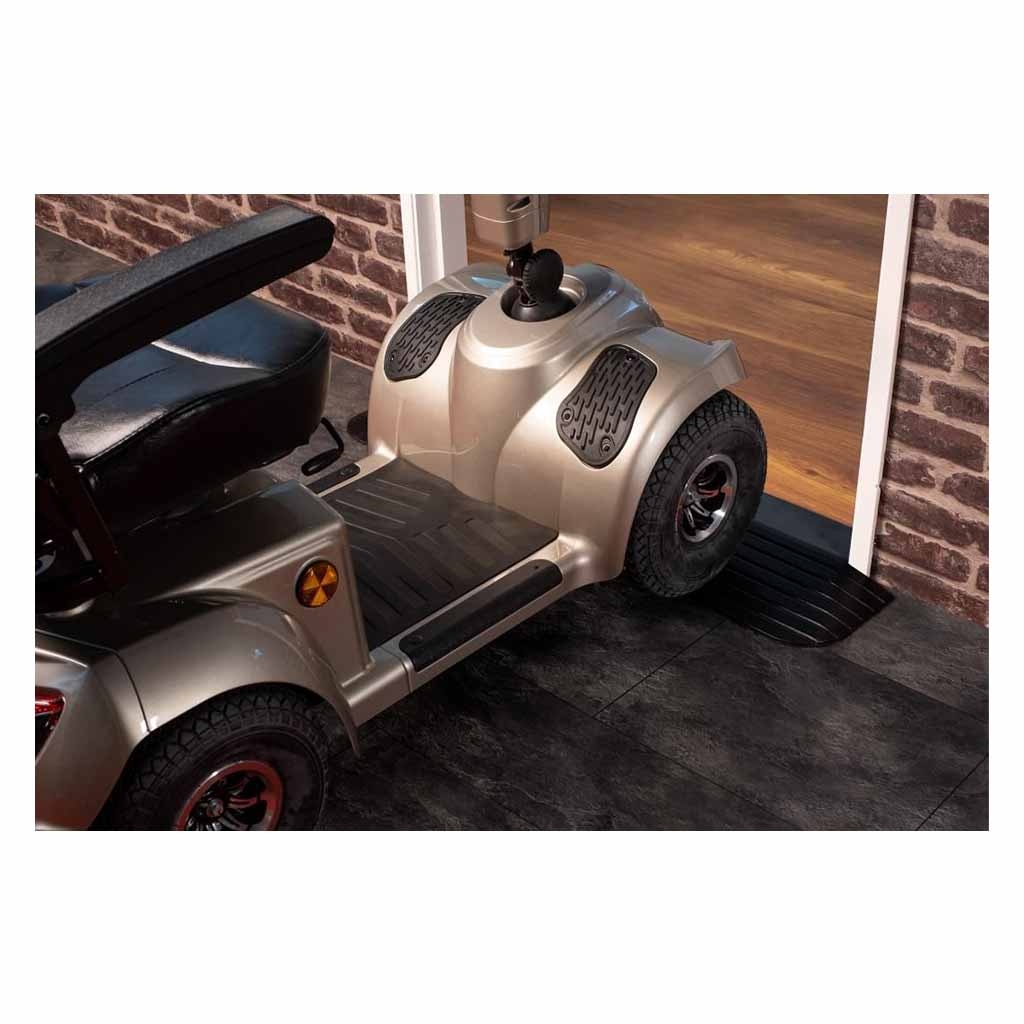 Wilt u een hoogteverschil overbruggen met uw scootmobiel of driewielfiets? Geen probleem. Met deze drempelhulp kan het.