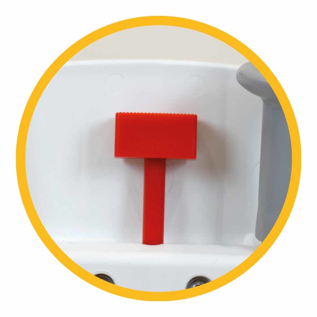 - Dubbele veiligheid, dankzij de twee getande stangen die de veilige op- en neerwaartse beweging mogelijk maken.