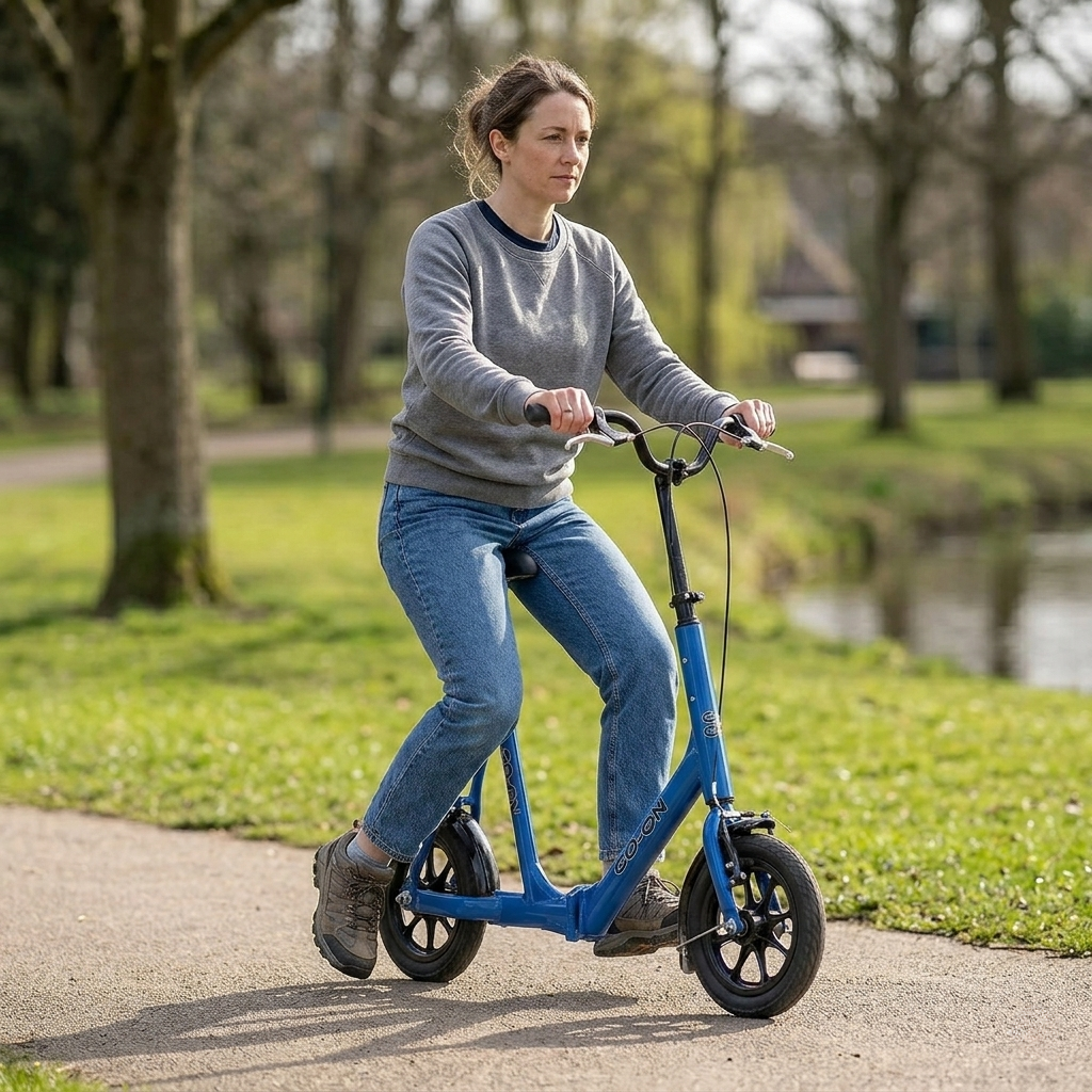 De GO-ON loopfiets maakt bewegen weer eenvoudig en comfortabel wanneer lopen of lang staan lastiger wordt. Deze lichtgewicht loopfiets ondersteunt u actief bij het verplaatsen, terwijl u toch in beweging blijft. Dankzij het opvouwbare ontwerp en de praktische instelmogelijkheden is dit model ideaal voor dagelijks gebruik, zowel binnen als buiten. Of u nu een stukje wilt wandelen, boodschappen doet of even wilt rusten onderweg: de GO-ON biedt u stabiliteit, comfort en vrijheid. Ideaal als u graag zelfstandig mobiel blijft zonder in te leveren op gemak. Met een gewicht van slechts 7,8 kg is deze lichtgewicht loopfiets eenvoudig te hanteren. U tilt of verplaatst het hulpmiddel zonder moeite, terwijl het frame toch stevig en betrouwbaar aanvoelt. Dit maakt de GO-ON bijzonder geschikt voor dagelijks gebruik. De GO-ON is opvouwbaar en daardoor ideaal als u vaak onderweg bent. U neemt hem eenvoudig mee in de auto of bergt hem compact op in huis. Met het stuur gedemonteerd wordt het formaat nog kleiner, wat extra praktisch is tijdens reizen. Het stuur en zadel zijn eenvoudig in hoogte verstelbaar met snelspanners. Hierdoor stelt u de loopfiets precies af op uw lichaamslengte. Dit zorgt voor een comfortabele zithouding en ondersteunt een natuurlijke manier van bewegen. De handrem biedt extra stabiliteit tijdens het op- en afstappen. Dit geeft u meer controle in dagelijkse situaties. Voor het afremmen tijdens het rijden gebruikt u voornamelijk uw voeten, wat zorgt voor een veilige en vertrouwde manier van stoppen. De 12-inch luchtbanden zorgen voor extra comfort tijdens het gebruik. Oneffenheden in de weg worden beter opgevangen, waardoor u soepeler rijdt. Dit maakt de GO-ON geschikt als mobiliteitshulpmiddel voor zowel binnen als buiten. U heeft keuze uit twee moderne kleuren. Capriblauw geeft een frisse en levendige uitstraling, terwijl Smaragdzwart zorgt voor een elegante en rustige look. Zo kiest u een uitvoering die bij u past.Belangrijke kenmerken