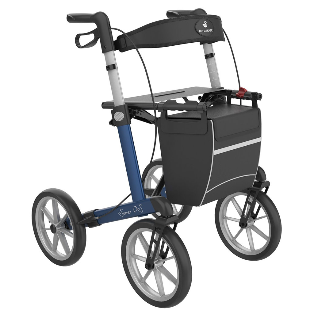 Ontdek de Rehasense Server OS Rollator: Wendbaar en comfortabel voor binnen en buiten. De Server OS is een lichtgewicht rollator met grote wielen, perfect voor soepel manoeuvreren in huis en gemakkelijk navigeren in kleine ruimtes. Dankzij de grote dempende wielen beweegt u moeiteloos over oneffen terrein en kleine obstakels buitenshuis. Met deze rollator hoeft u hem minder vaak op te tillen, zelfs over drempels of ongelijke wegen. De extra grote en brede banden bieden optimaal loopcomfort met minimale trillingen tijdens het gebruik. Bovendien zijn de wielen met soft banden lekvrij, waardoor u nooit met een lekke band komt te staan.