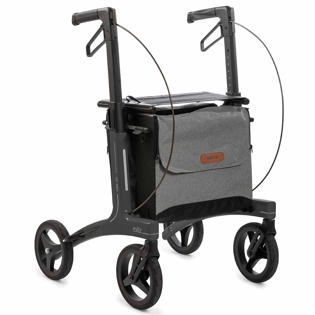 De Rollz Air is ontworpen voor iedereen die soepel en comfortabel wil lopen met een rollator die uitzonderlijk licht aanvoelt. Dankzij het ultralichte carbonframe beweegt u moeiteloos door de dag, terwijl u profiteert van stabiliteit en comfort tijdens iedere wandeling. De Rollz Air is verkrijgbaar in twee maten, Small en Regular, zodat u altijd een uitvoering kiest die perfect aansluit op uw lichaamslengte. Het sterke carbonfiber frame zorgt ervoor dat de Rollz Air ongekend licht blijft, met slechts 4,7 kg voor de Small en 4,9 kg voor de Regular uitvoering. Hierdoor tilt u de rollator gemakkelijk op, zet u hem zonder moeite in de auto en manoeuvreert u soepel door uw woning. Dit lage gewicht maakt de Rollz Air ideaal wanneer u vaak onderweg bent of een lichtgewicht rollator wenst die eenvoudige hantering mogelijk maakt. Ondanks het minimale eigen gewicht biedt de Rollz Air een indrukwekkend draagvermogen van 175 kg. Dit onderstreept de betrouwbaarheid van de constructie, zodat u met een gerust gevoel kunt lopen en comfortabel kunt zitten wanneer u onderweg wilt pauzeren. De handremmen zijn eenvoudig te bedienen en beschikken over een betrouwbare parkeerfunctie. Hiermee zet u de rollator veilig vast wanneer u wilt gaan zitten of wanneer u stilstaat op een helling. Zo behoudt u volledige controle over uw rollator. Dankzij de wendbare wielen en het lichte, stabiele frame voelt de Rollz Air zich thuis op zowel gladde vloeren binnen als op licht oneffen paden buiten. U navigeert moeiteloos door deuropeningen, winkels en stoepen, terwijl u geniet van balans en ondersteuning tijdens langere wandelingen. Met één soepele beweging klapt u de Rollz Air tot een compact formaat in. Dit maakt hem ideaal voor kleine woonruimtes, de auto of tijdens het reizen. Het inklapmechanisme is ontworpen om licht, intuïtief en eenvoudig te bedienen te zijn. De Rollz Air is verkrijgbaar in Small en Regular, waardoor de handgreephoogte altijd afgestemd kan worden op uw lengte. De Small variant biedt een bereik van 79–91 cm, terwijl de Regular instelbaar is van 76–100 cm. Dit helpt u in een natuurlijke en comfortabele houding te lopen. Aan de voor- en achterkant beschikt de Rollz Air over twee ruime tassen. Hiermee neemt u boodschappen, persoonlijke eigendommen of andere benodigdheden gemakkelijk mee. Uw handen blijven vrij terwijl uw spullen veilig opgeborgen zijn. Ja, de Rollz Air is ontworpen voor zowel binnen als buiten en biedt dankzij het lichte frame en de stabiele wielen prettig loopcomfort op diverse ondergronden. De Rollz Air is beschikbaar in Small (4,7 kg, 79–91 cm) en Regular (4,9 kg, 76–100 cm). Voor optimaal loopcomfort stelt u de handgrepen van de Rollz Air in op polshoogte. U meet dit eenvoudig door rechtop te gaan staan met ontspannen schouders en uw armen langs uw lichaam. De bovenkant van de handgrepen hoort dan gelijk te staan met de hoogte van uw polsen. Zo loopt u in een natuurlijke, rechte houding en houdt u de rollator comfortabel en veilig onder controle. De Rollz Air klapt met één vloeiende beweging in tot een compact formaat. U hoeft hiervoor alleen de zitting omhoog te halen, waarna de rollator samenklapt. Dit maakt het ideaal voor vervoer in de auto of het opbergen in kleine ruimtes. Het maximale gebruikersgewicht bedraagt 175 kg, onafhankelijk van de maat. Ja, de Rollz Air wordt grotendeels gebruiksklaar geleverd. U hoeft slechts enkele eenvoudige stappen te volgen voor het eerste gebruik.Belangrijke kenmerken
