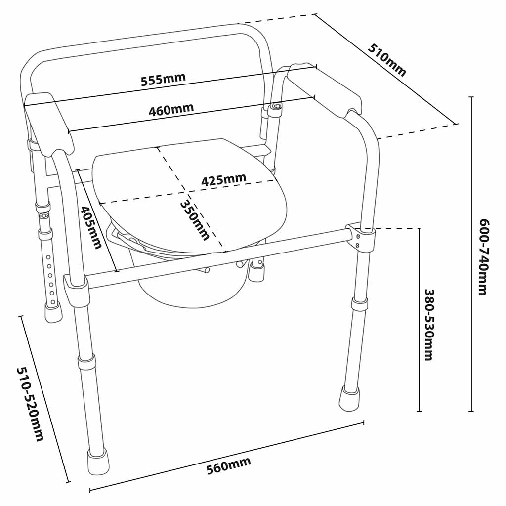 Toiletstoel met armsteunen in hoogte verstelbaar (Buitenkansje)